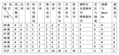 从上述 “2005年—2010年上海市高考英语语法题统计表”上可以看出语法测试的重点是动词,6次高考共测试36题,平均每次高考测试6题;其次是状语从句有10题;名词性从句有10题;形容词与副词有7题;而冠词与数词、虚拟语气为最少。由此我们就可以根据历年语法测试题的分布,合理分配语法复习的时间。因此我们在复习时,就要在重点项目上多花时间,在非重点项目少花时间。再如,在复习非谓语动词时,哪些动词后可以跟动词不定式作宾语,哪些动词后可以跟动名词作宾语,要把常用的动词进行分类,然后背诵;在复习动词不定式作宾补时,我们也可以进行分类,如:feel, hear, listento, make, let, have, see, look at,watch, notice, observe等,这些动词后面动词不定式作宾语补足语时不带to:I often hear him sing the song.Don’tforget to have him come. He sat lis-tening to her climb the stairs。方法各有不同,但目的只有一个,抓住重点,提高效率。
