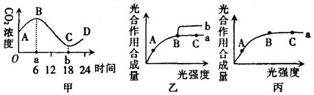 甲图中,一昼夜中CO2浓度最高和最低的时间点分别是a时和b时,a、b两个时间点的含义是: