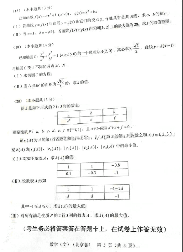 2012年普通高等学校招生统一考试(北京卷)数学文 扫描版无答案