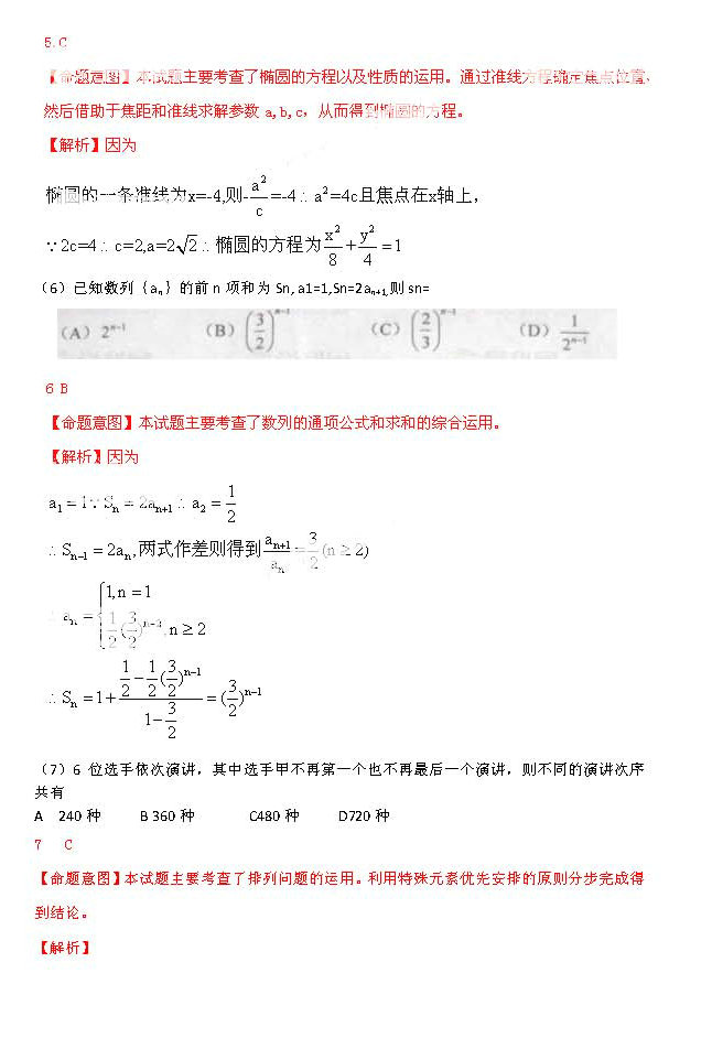 2012年普通高等学校招生全国统一考试全国卷(数学文)扫描版