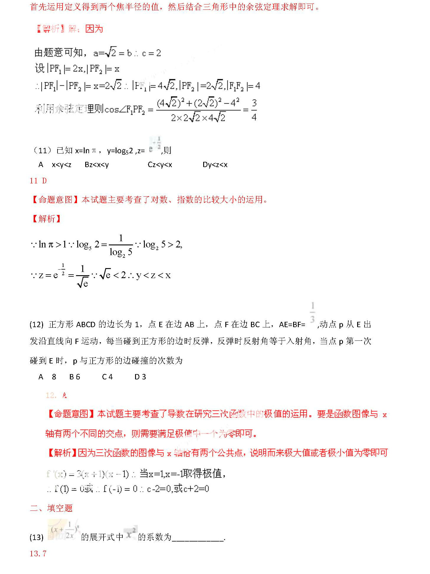 2012年普通高等学校招生全国统一考试全国卷(数学文)扫描版