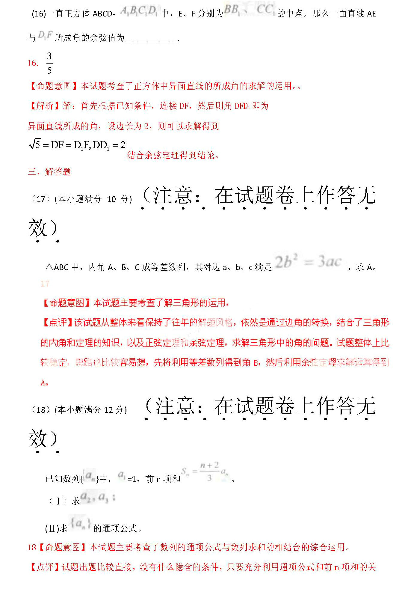 2012年普通高等学校招生全国统一考试全国卷(数学文)扫描版