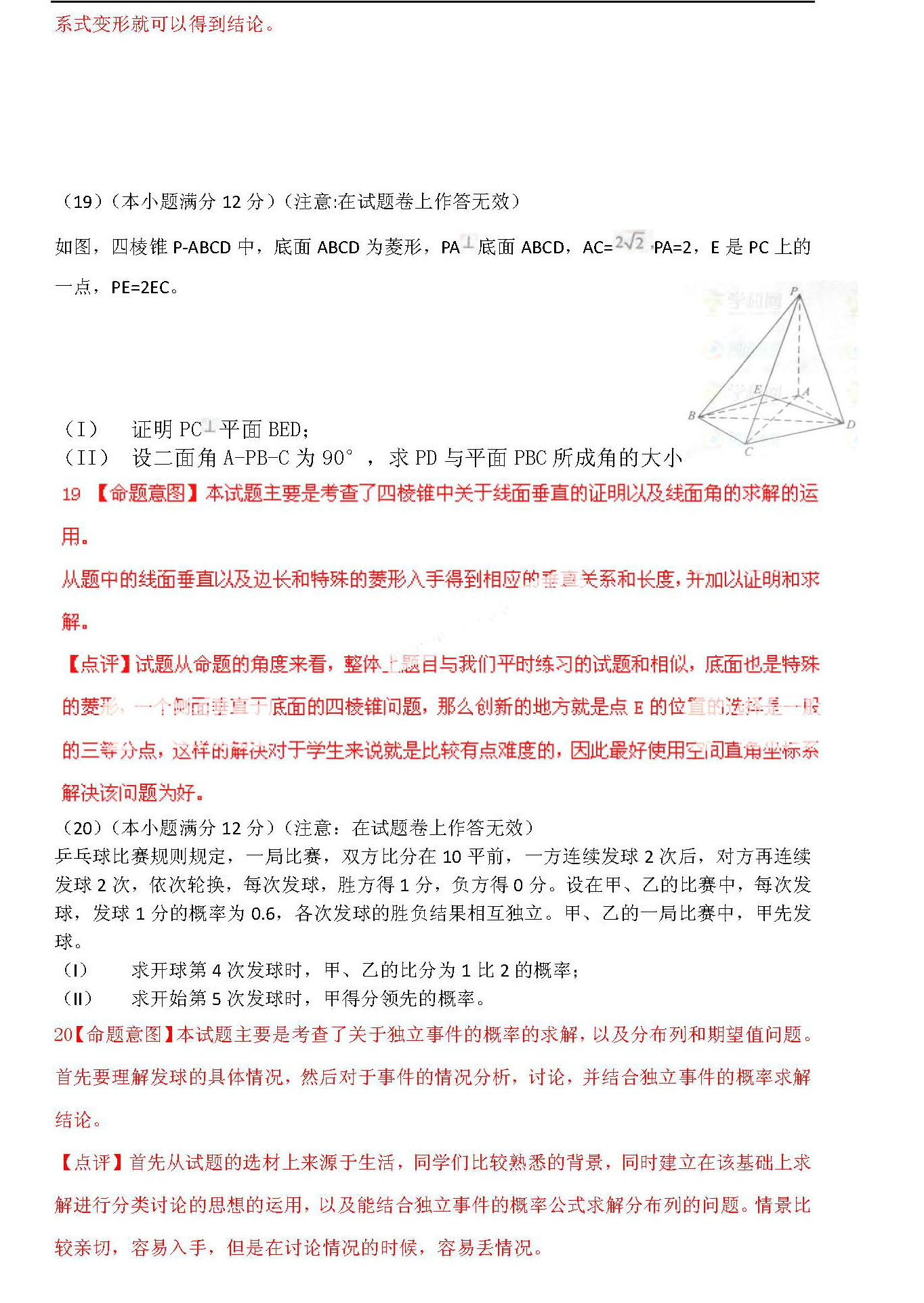 2012年普通高等学校招生全国统一考试全国卷(数学文)扫描版
