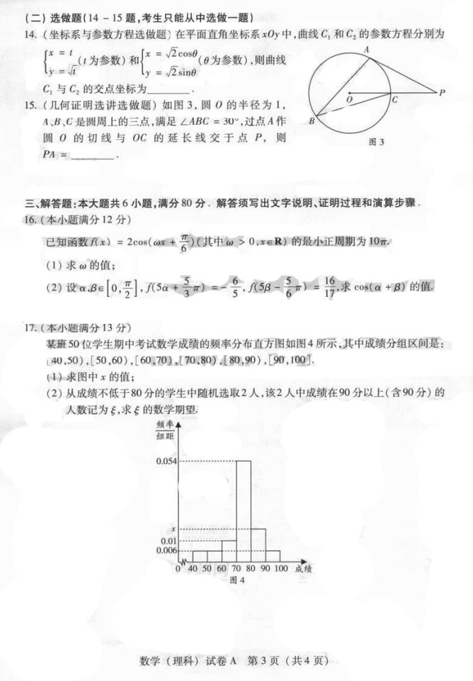 2012年普通高等学校招生全国统一考试广东卷A(数学理)扫描版无答案