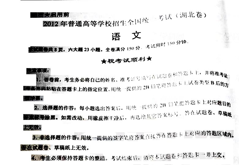2012年普通高考学校招生全国统一考试湖北卷(语文)