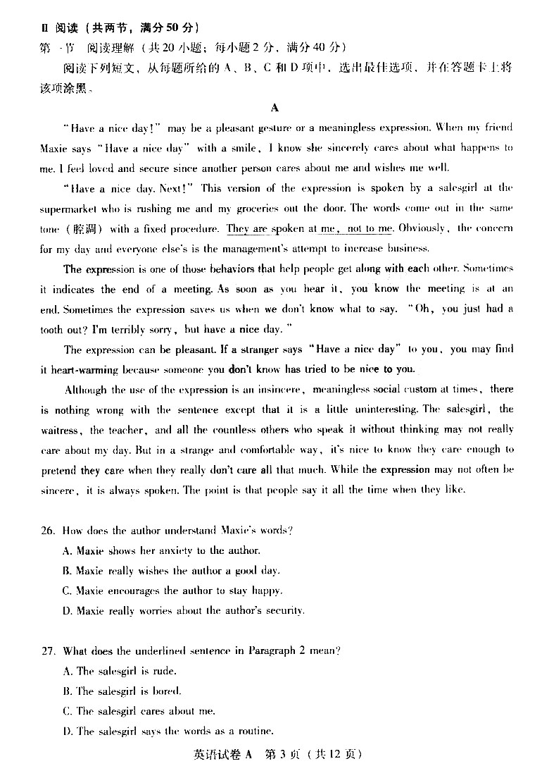 2012年普通高等学校招生全国统一考试广东卷A(英语)扫描版缺答案