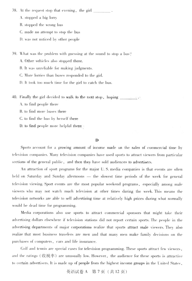 2012年普通高等学校招生全国统一考试广东卷A(英语)扫描版缺答案