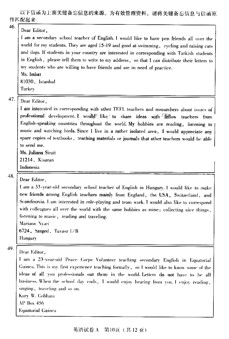 2012年普通高等学校招生全国统一考试广东卷A(英语)扫描版缺答案