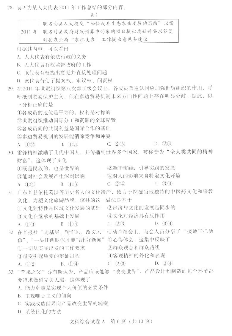 2012年普通高等学校招生全国统一考试广东卷A(文综)扫描版无答案