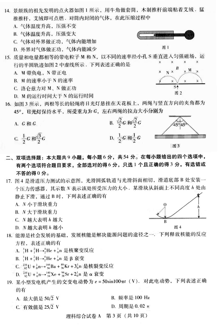 2012年普通高等学校招生全国统一考试广东卷A(理综)扫描版缺答案