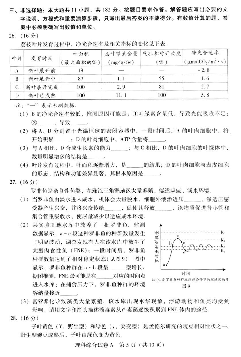 2012年普通高等学校招生全国统一考试广东卷A(理综)扫描版缺答案