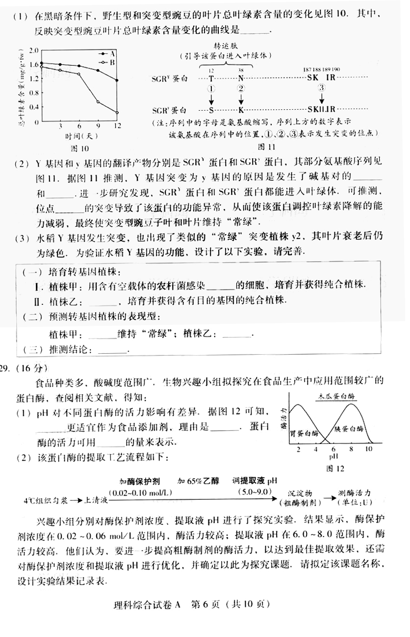 2012年普通高等学校招生全国统一考试广东卷A(理综)扫描版缺答案