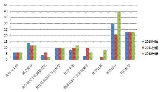 1、化学与生活、氧化还原和电化学、有机等分值分布相当稳定。