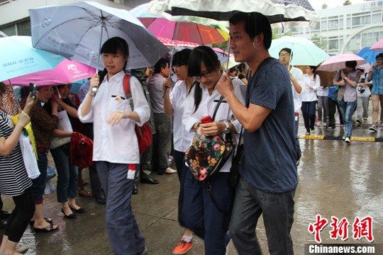 中新网宁波6月7日电(记者 何蒋勇 实习生 林波)今日(7日)是高考第一天。在浙江宁波,老天下起了大雨,为考生送来阵阵清凉,但这也苦了在外等候的家长,风大雨大,家长撑伞在雨中默默等候考试的孩子。据悉,今年宁波市高考报名人数为43023人,比去年减少了2465人。