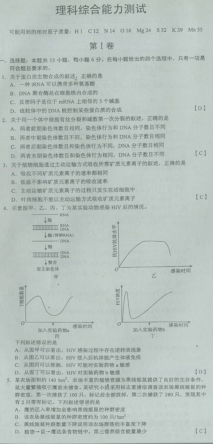 2013年普通高等学校招生全国统一考试湖南卷(理综)高清版有答案无底纹