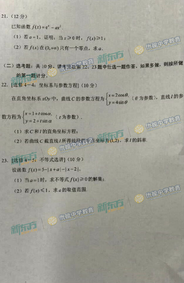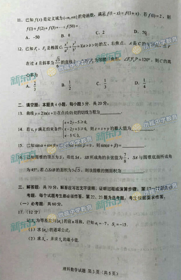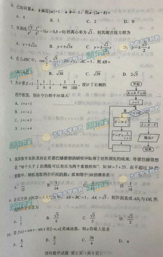2018年普通高等学校招生全国统一考试数学试题(全国2卷 理 无答案)