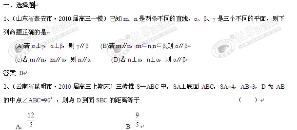 [精题分解]:点、线、面的位置关系(复习类)
