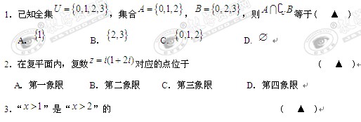 浙江省衢州市2010届高三下学期4月教学质量检测(数学文)