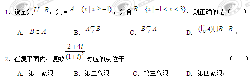 甘肃省天水市一中2010届高三下学期模拟考试卷一(数学理)