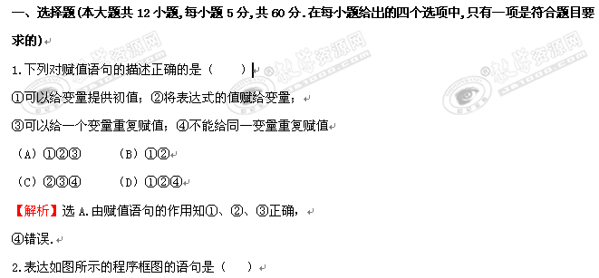 [精练精析]单元质量评估(一):第一章 算法初步(人教B版必修3)