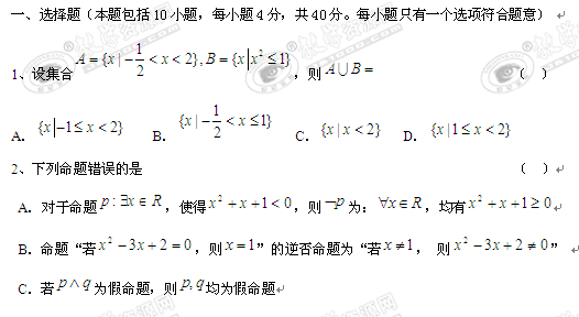 辽宁省抚顺县高中09-10学年高二下学期期中考试(数学文)