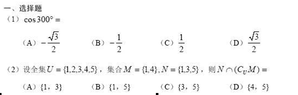 2010年普通高等学校招生全国统一考试(全国卷I)(数学文)扫描版有答案