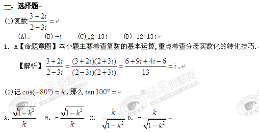 2010年普通高等学校招生全国统一考试(全国卷Ⅰ)(数学理)word解析版(缺解答题解析)