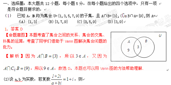 2010年普通高等学校招生全国统一考试(辽宁卷)(数学理)解析版