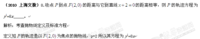 2010年高考数学填空试题分类汇编——圆锥曲线