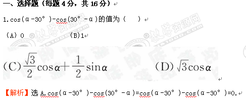 [精练精析]3.1.1两角差的余弦公式(人教A版必修四)