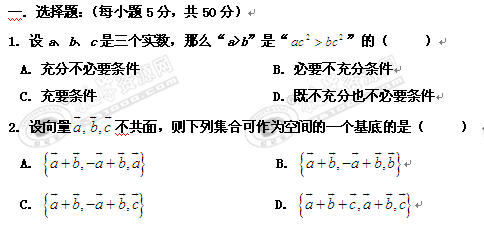 河北省高邑县第一中学09-10学年高二下学期期末测试(数学文)