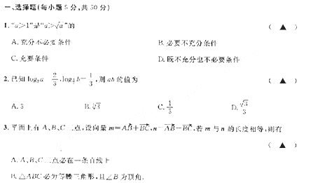浙江省菱湖中学09-10学年高二下学期期末考试(数学文)扫描版