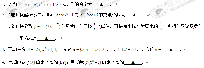 江苏省南通中学09-10学年高二下学期期末考试(数学)