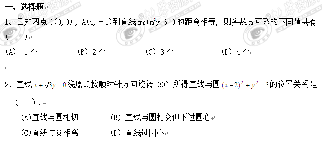 数学:《直线与圆的方程的应用》同步练习(2)(人教A版必修2)