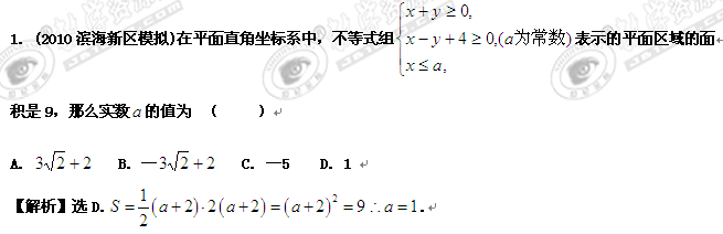 2011年高考新课标复习模拟题精析:考点19、二元一次不等式(组)与简单的线性规划问题