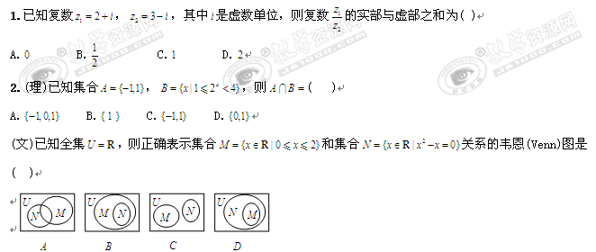 北京市2011届高三起点考试(数学文理卷)