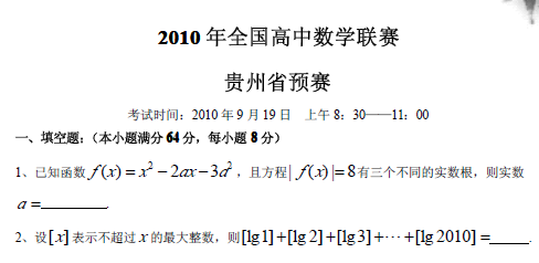 2010年全国高中数学联赛贵州初赛(PDF版)