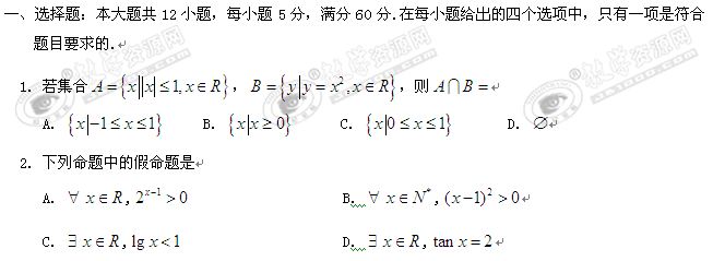 山东省莘县实验高中2011届高三上学期第一次阶段性测试(数学文)