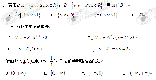山东省莘县实验高中2011届高三上学期第一次阶段性测试(数学理)
