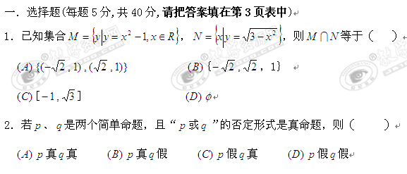 北京市北京五中2011届高三上学期第一次月考(数学理)