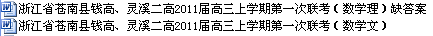 [打包下载]浙江省苍南县钱高、灵溪二高2011届高三上学期第一次联考(数学文理卷)