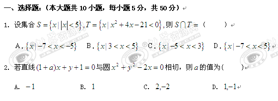 浙江省开化中学10-11学年高二上学期第一次月考(数学理)