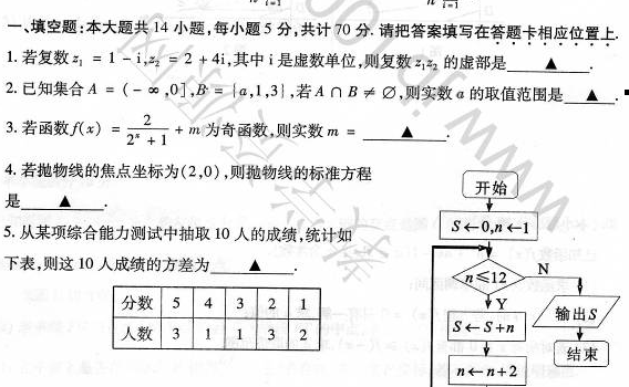 江苏省连云港市2011届高三上学期第一次调研试题(数学)扫描版