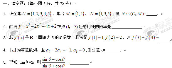 江苏省泰兴市横垛中学2011届高三上学期限时训练(数学文)