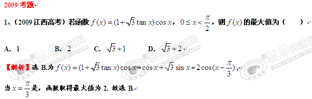 07-09高考数学试题分类汇总:考点12 三角恒等变换(大纲版)