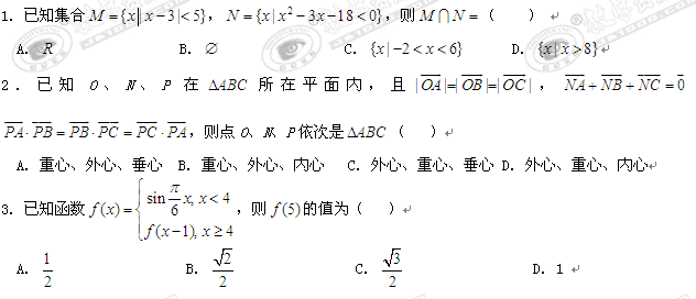 四川省成都外国语学校2011届高三上学期期中考试(数学文)缺解答题题干