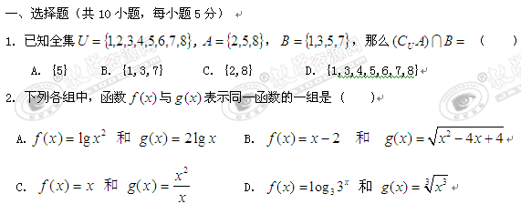 湖北省荆州市江陵二中10-11学年高一上学期期中考试试题(数学)