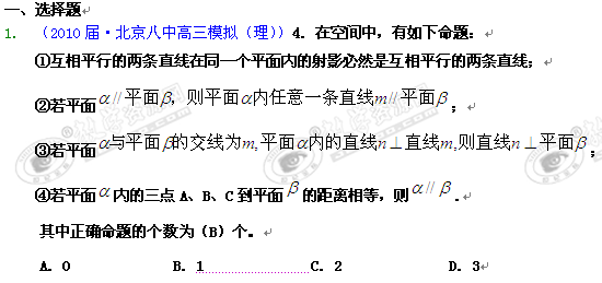 [精题分解]空间点、线、面的位置关系(2010模拟题分解2)