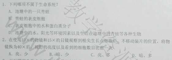 山东省高密市10-11学年高一上学期期中考试(生物)扫描版