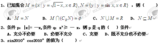 海南省嘉积中学2011届高三上学期教学质量监测(二)(数学文)